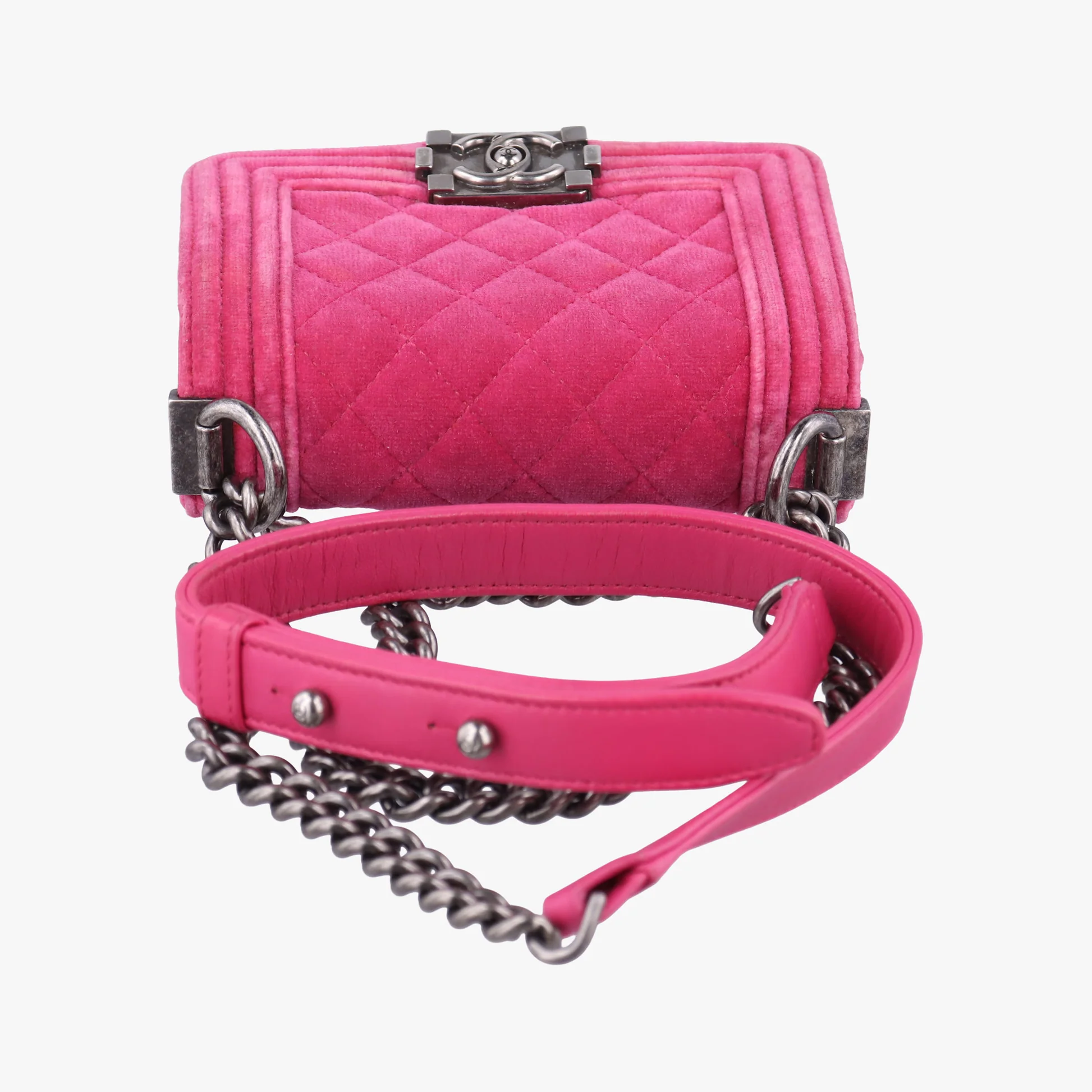 Chanel Boy Pink velour shoulder bag